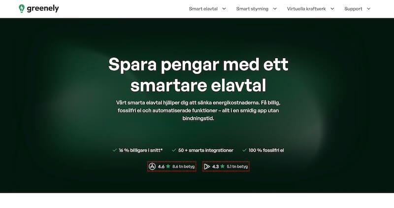 Greenely erbjuder inte fasta elavtal. För dig som vill ha stabila kostnader varje månad kan det därför vara ett mindre passande alternativ. - Kräver aktiv elanvändning